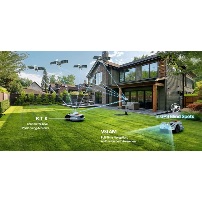 Sunseeker X3 Gen 2 ir moderns bezvadu robotpļāvējs, kas apvieno centimetru precīzu pozicionēšanu ar nRTK (Network RTK) un VSLAM vizuālo kartēšanu, lai nodrošinātu augsti efektīvu, precīzu un autonomu zāliena kopšanu bez perimetra vadiem. Modelis paredzēts vidējiem zālājiem līdz 800 m², kur svarīgi gan precizitāte, gan intuitīva vadība.